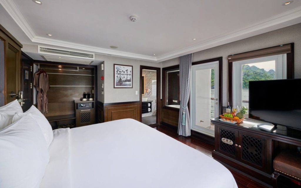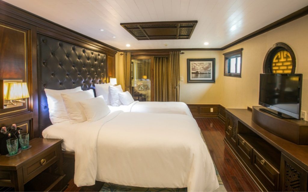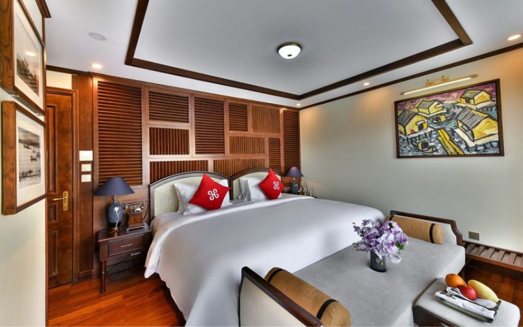 Experience the perfect blend of sophistication between classic European form and rustic Vietnamese styling aboard Mon Chery Cruise. This elegant design distinguishes us with tiny, unique features in each of the 42 spacious cabins.