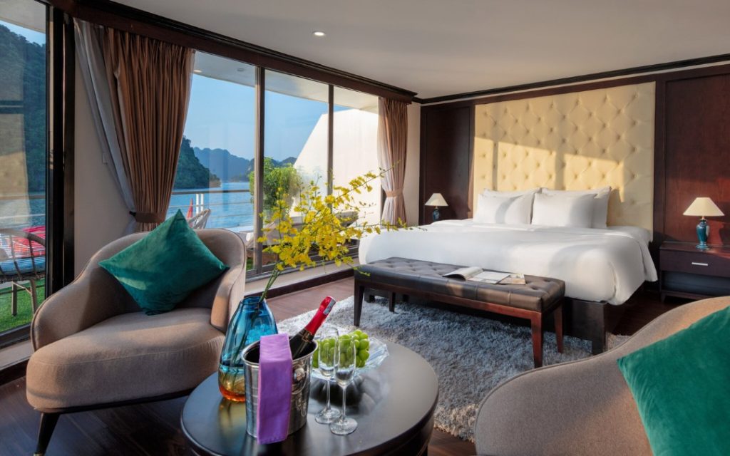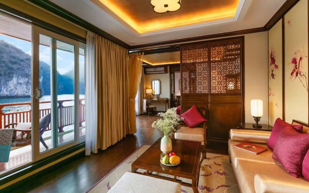 Orchid Trendy Cruise offers a new route through Halong Bay and Lan Ha Bay, complementing the classic architecture of Vietnam’s French colonial era with an Oriental touch. The cruise features 20 cabins with private balconies overlooking the scenic bay, an outdoor Jacuzzi, and a restaurant serving a fusion of Asian and European cuisine. It promises an unforgettable and luxurious experience to all its clients.